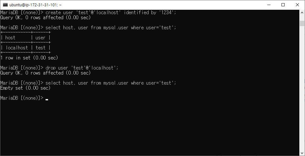 MariaDB에서 계정을 생성하고 권한 부여하는 방법입니다.