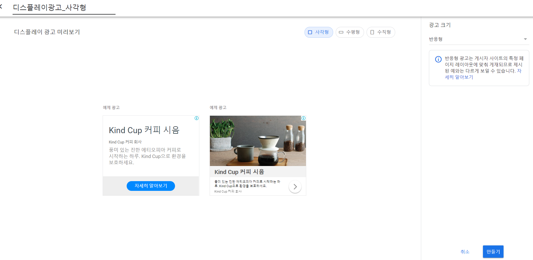 이 포스팅에서는 초보자가 가장 넣기 쉬운 '디스플레이 광고'를 예제로 들었습니다.