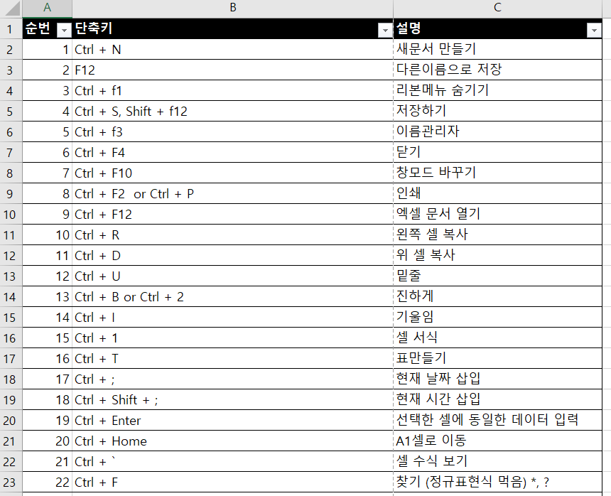 | [자주 사용하는 엑셀 단축키 1탄 (20개)] 셀 범위 선택, 이동(Ctrl + 방향키), 글꼴 편집 등 (0) | 2020.02.04 |