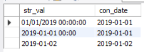 insert into cte values ('01/01/2019 00:00:00'), ('2019-01-01 00:00'), ('2019-01-02');