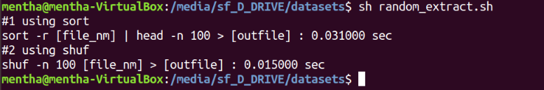 2가지 방법중 shuf 명령어가 속도가 빠르니 shuf 명령어 사용을 권장합니다.