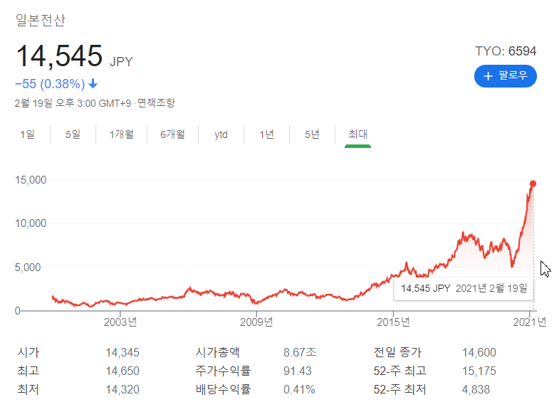 (일본전산 규모 : '21-02-19 기준 시가총액 약 8.67조의 대기업)