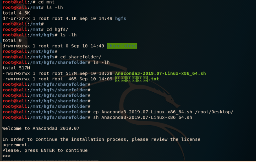 cp Anaconda3-2019.07-Linux-x86_64.sh /root/Desktop/ <- 설치파일을 바탕화면으로 복사(cp)