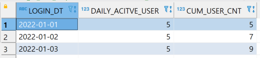 , SUM(SUM(CASE WHEN seq_num = 1 THEN 1 ELSE 0 END)) OVER (ORDER BY login_dt) AS cum_user_cnt