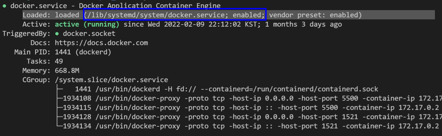 Loaded: loaded (/lib/systemd/system/docker.service; enabled; vendor preset: enabled)