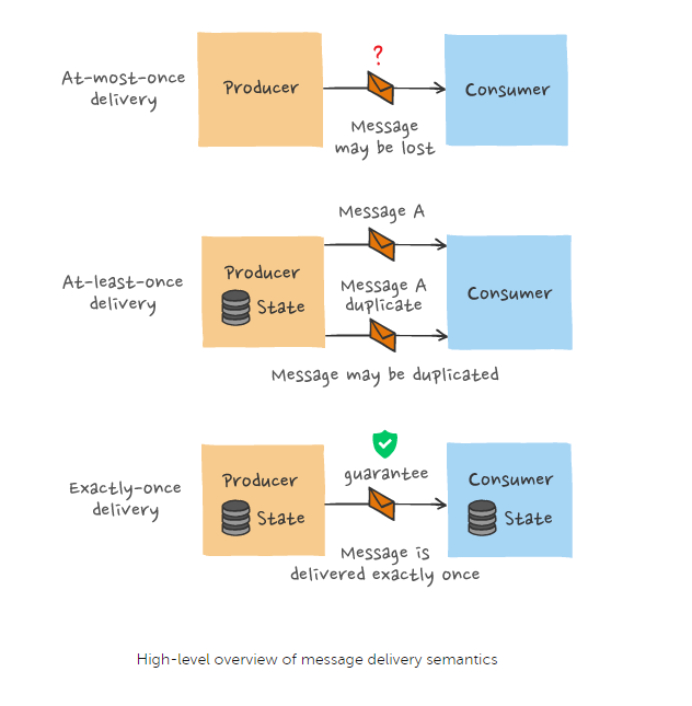- 3. Exatly-once(정확히 한번): 메시지를 정확히 한번만 전송한다.