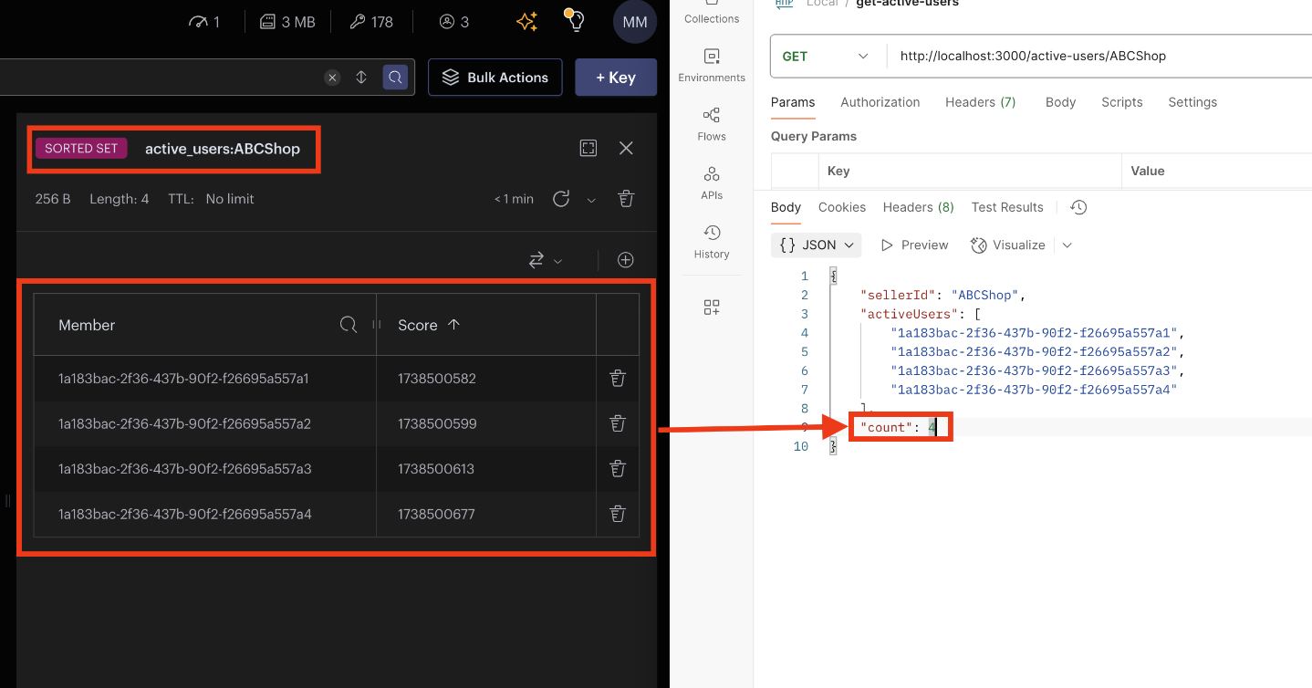 ✔ Redis ZSET(active_users:sellerId)에 session_id와 timestamp를 저장