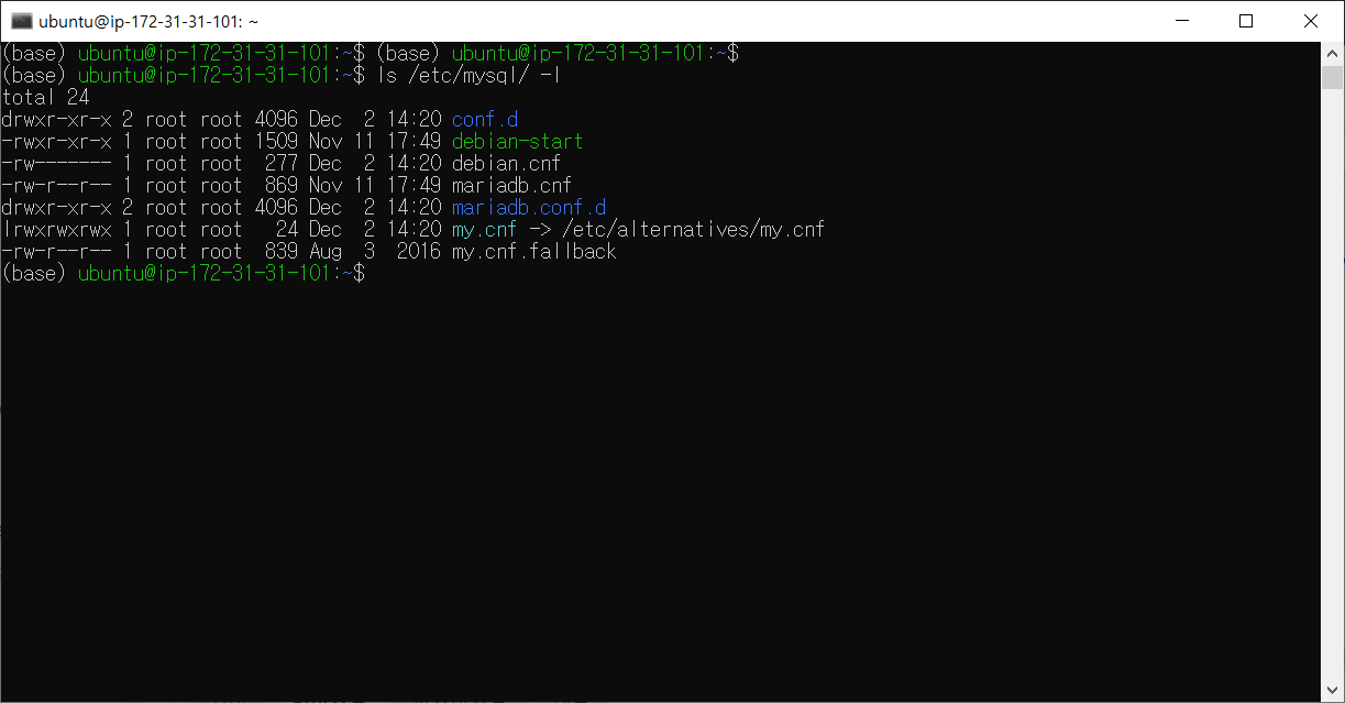 APT(Advanced Packge Tool)를 사용해서 패키지를 설치하는 데비안 계열 리눅스(데비안, 리눅스 등)는 /etc/mysql 경로에 MariaDB 설정 파일이 저장됩니다.