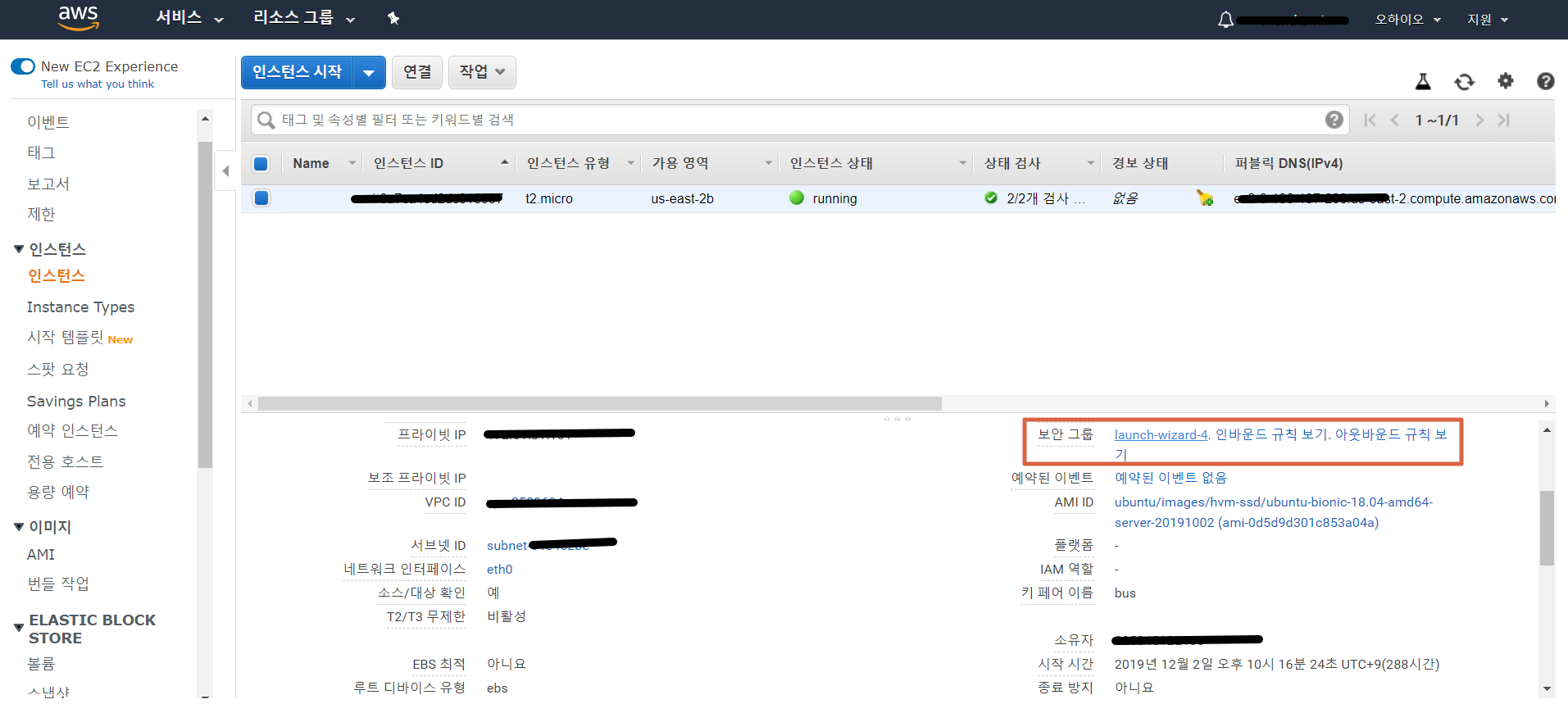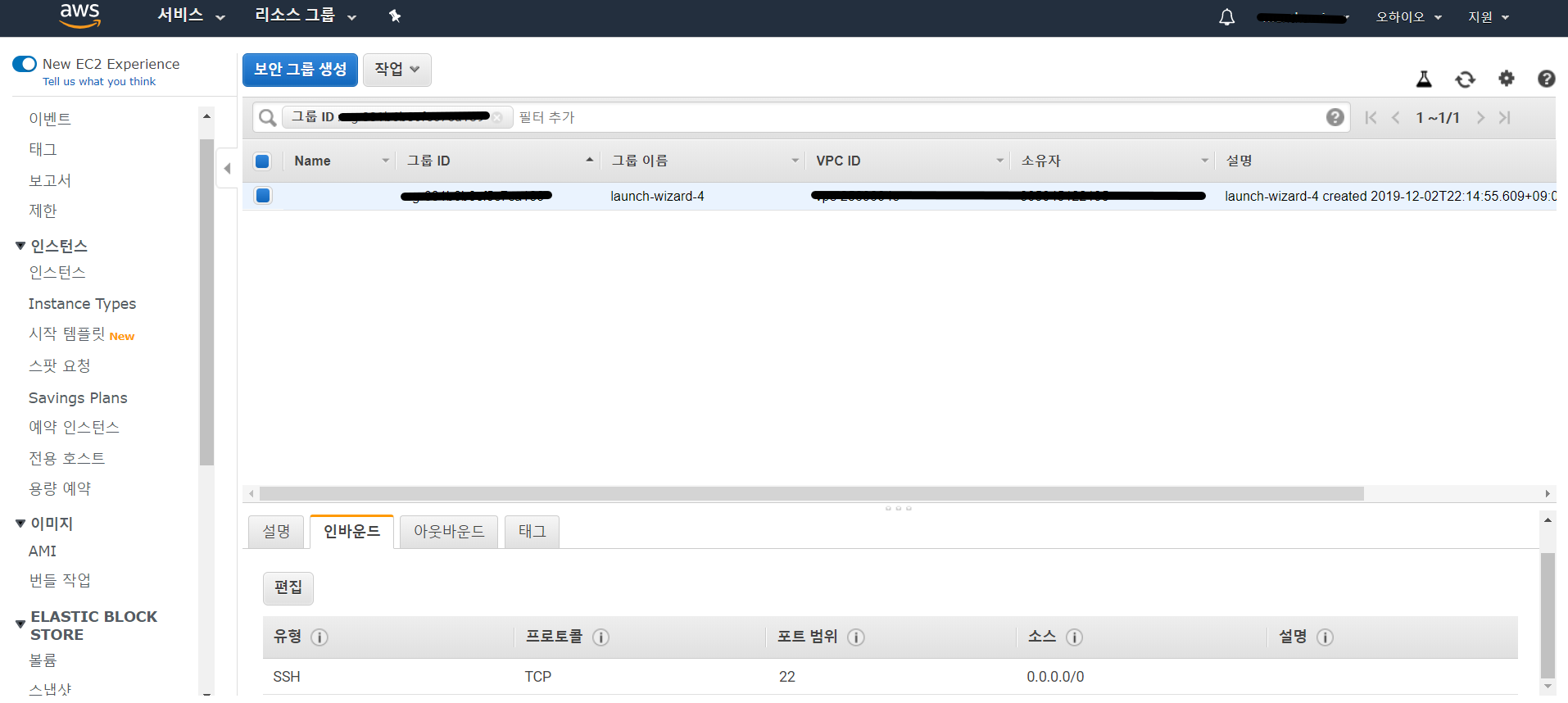 AWS 리소스 그룹 -> 네트워크 및 보안 -> 보안 그룹으로도 이동할 수 있습니다.