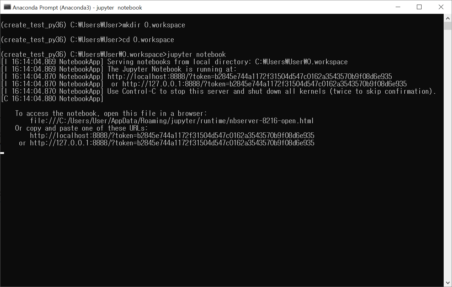 저는 '0.workspace'라는 디렉터리를 만들고 해당 디렉터리에서 jupyter notebook을 실행했습니다.