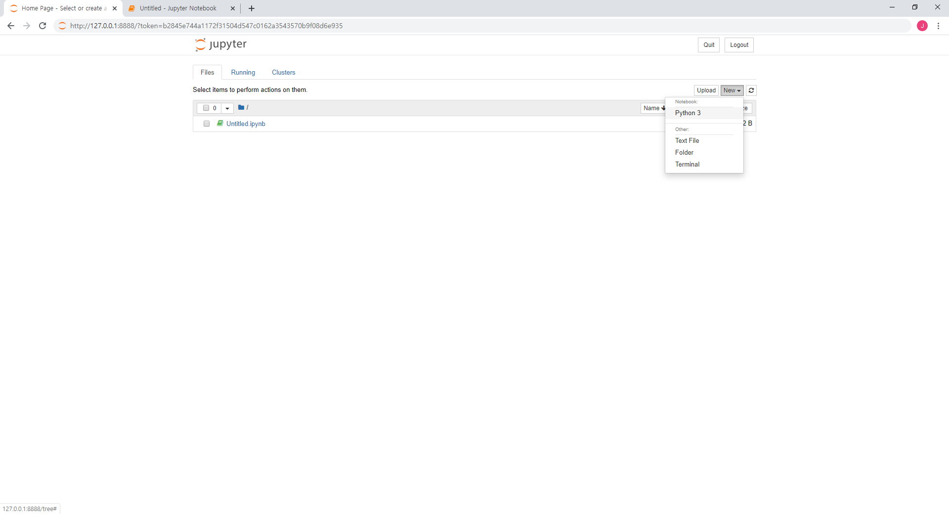 실행한 주피터 노트북 모습