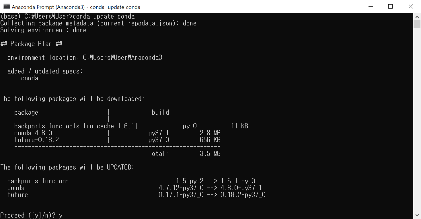 가상환경 생성 전에 conda 업데이트 진행
